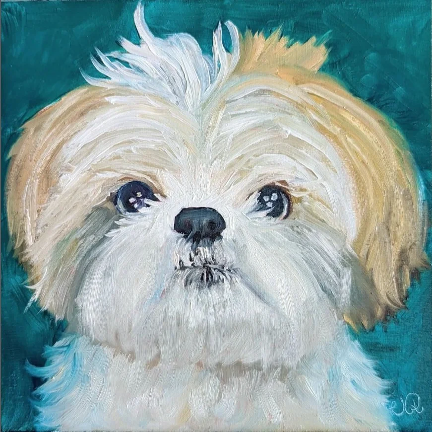 Buddy6x6 inchesOil on hardboardVanessa Roettger 2022Not for saleRest in peace little Bud 💙 I love you