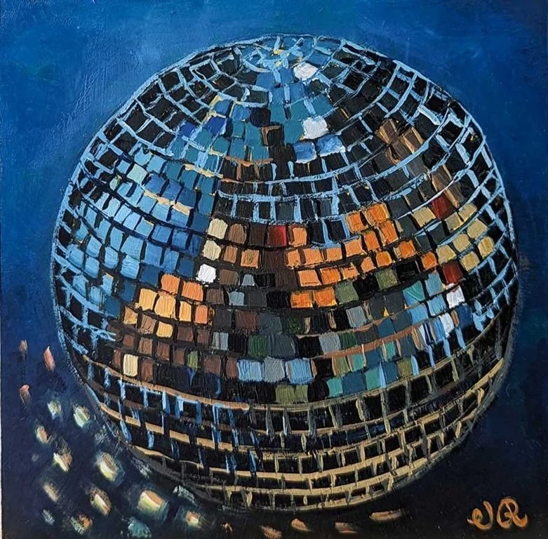 Disco Ball in Blue and Orange6x6 inchesAcrylic on hardboardVanessa Roettger 2023Buy Original ๐Buy Print ๐